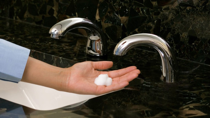 Use liquid soap and water whenever possible, and place alcohol-free hand rub in rooms where sinks are not available. These steps help reduce the spread of germs between contact points, surfaces, and individuals.