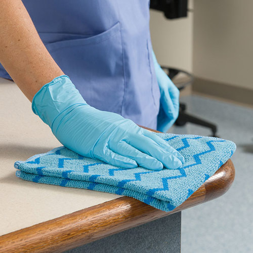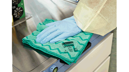 The Rubbermaid Commercial Products specialists recommend using disposable microfibres in healthcare situations so that cross-contamination risks can be eliminated. This will provide an extra barrier against re-contamination as these cloths do not require laundry care and are disposed of after use, whilst being equally as effective as launderable alternatives.
